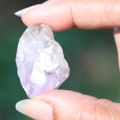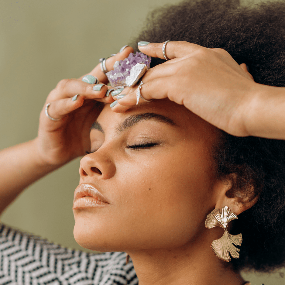 Amethyst is the violet variety of quartz, a member of the silica family that grows in crystals and geodes. In the hand it feels cool and composed, like evening light settling over a quiet room. Shades range from soft lilac to royal purple, sometimes banded or tipped toward smoky hues. People reach for amethyst when they want a calmer mind, clearer intuition, and a steady sense of inner space.