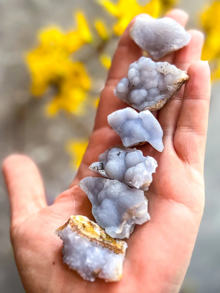 Keep a piece in your pocket on days you want a calmer tone, especially for meetings, family talks, or hard conversations. Hold it for a minute before you speak and set one simple intention, “clear and kind” is enough. Blue Chalcedony is sweet for journaling when your mind feels tangled and you want words to come out gentler. Dendritic Chalcedony makes a great desk stone for staying grounded and friendly while you handle real-life stuff.