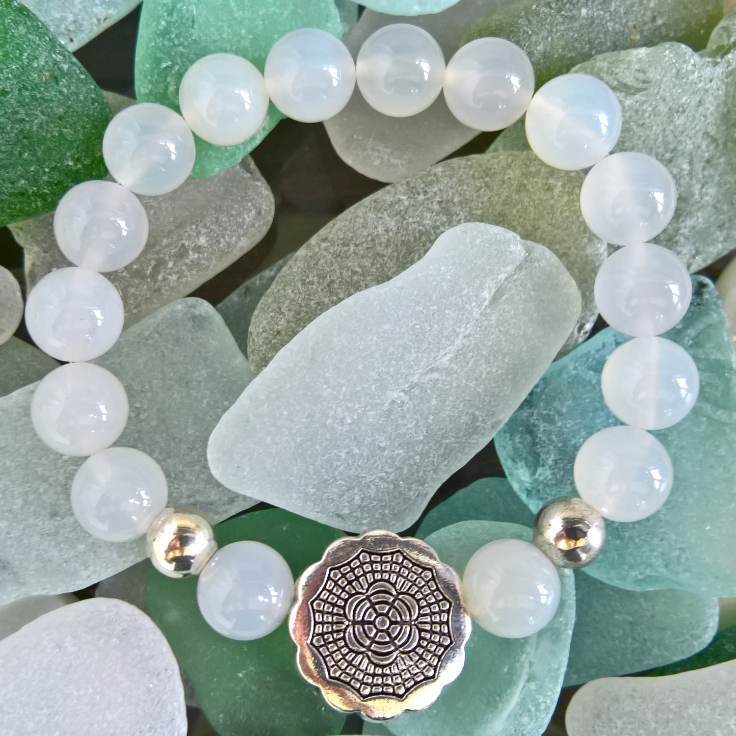 Chalcedony is a cryptocrystalline member of the quartz family, usually soft-looking, waxy-glossy, and quietly luminous. It often shows up as misty blue, milky white, smoky grey, or warm brown, with patterns that feel like weather caught in stone. In everyday life, Chalcedony is the “gentle steady” friend: many people reach for it when they want calmer thoughts, kinder words, and a little emotional smoothing without shutting anything down.