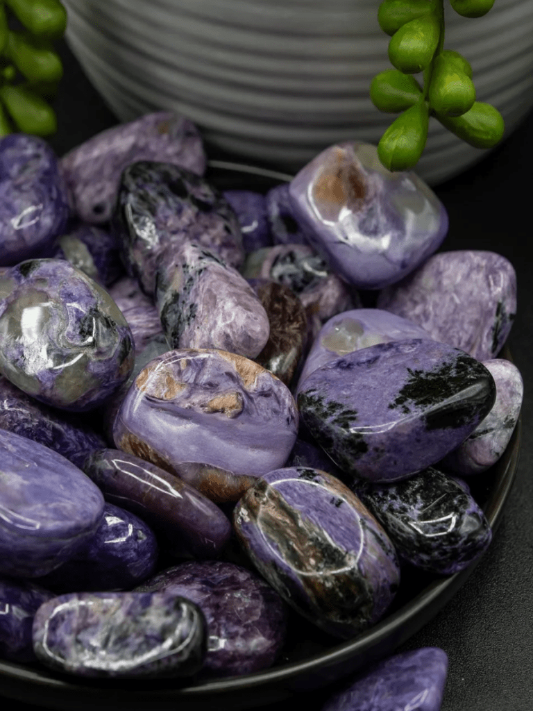 Slip a small tumbled stone into your pocket when you’re dealing with a change you didn’t exactly order, but you’re ready to handle. Try a simple meditation: one hand on your heart, Charoite near your forehead or held lightly, and ask, “What’s the next kind step?” Keep it near your journal for decision days. If you’re sensitive, pair it with something grounding (smoky quartz or hematite) so you stay anchored while you open up.
